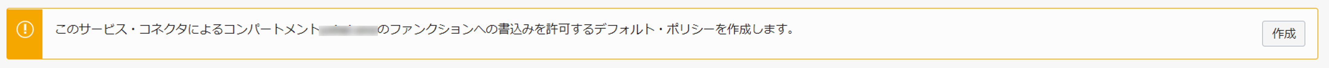 - サービス・コネクタがファンクションにアクセスするためのポリシーを自動設定するか聞かれますので「作成」をクリックします。